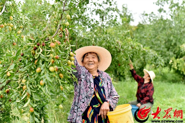 同样忙碌的还有孙武街道邓家村蛙声小镇农业合作社的脆枣园,“从网上刷到了解到这里脆枣成熟了,就约了朋友来采摘,这里的脆枣又脆又甜,老人小孩都比较喜欢。”来自滨州市区的游客杨淼说。